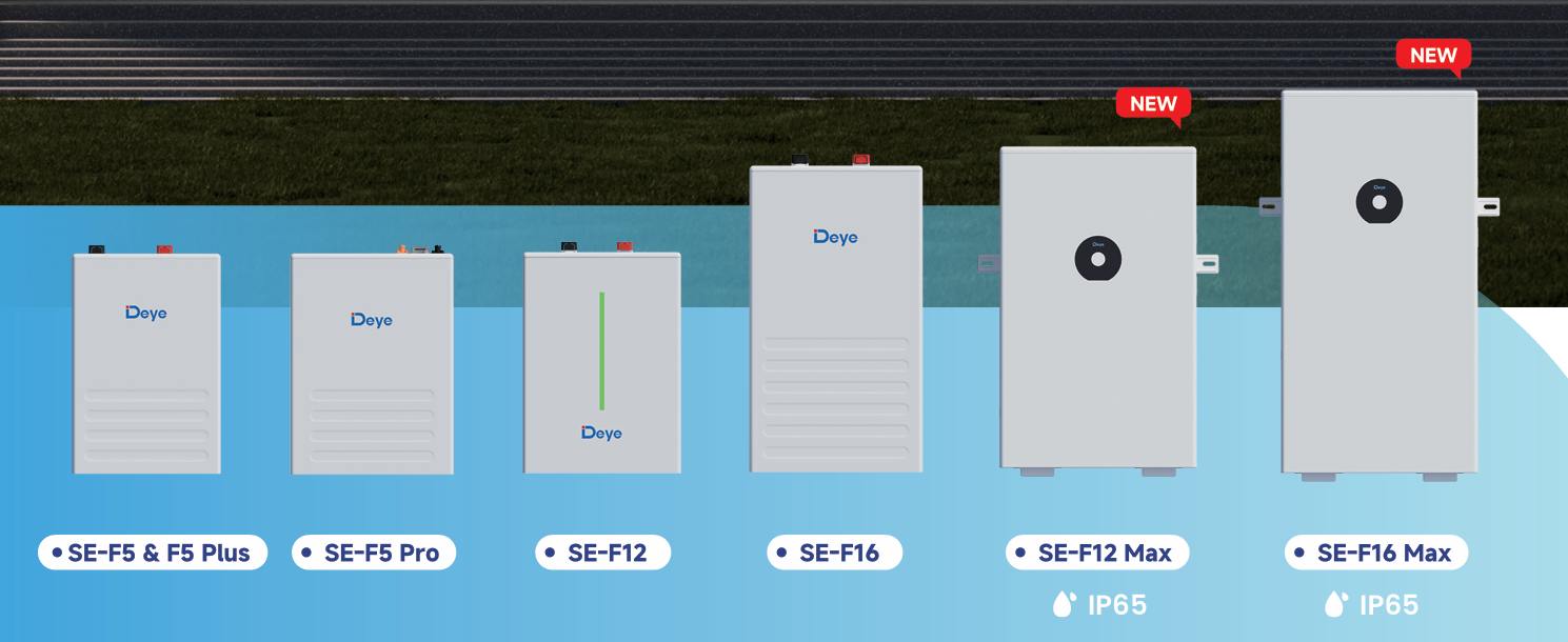 Všechny modely SE-F využívají chemii LFP a komunikují přes CAN 2.0 a RS485. Každá sada podporuje paralelní rozšíření; Brožura společnosti Deye specifikuje standardně až 32 paralelních jednotek, přičemž větší počty paralelních jednotek jsou zobrazeny pomocí můstku CAN (stále platí návrh systému a místní schválení).